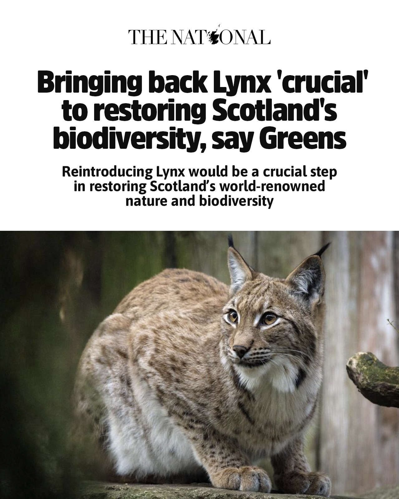 Lynx, formerly exterminated in Germany, France and Switzerland, have been brought back to these countries. There's now a campaign to reintroduce them in Scotland! First Minister John Swinney has said it won't happen, but the Greens are trying to bring it to a vote.